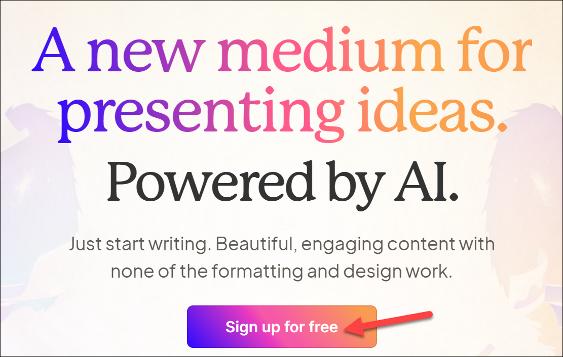 In essence, it's a new medium for presenting ideas powered by artificial intelligence. Users have described it as a cross between Notion and Canva, and that is saying something. You start by writing what you want, and the system takes over the formatting and design work, delivering engaging and beautiful content.