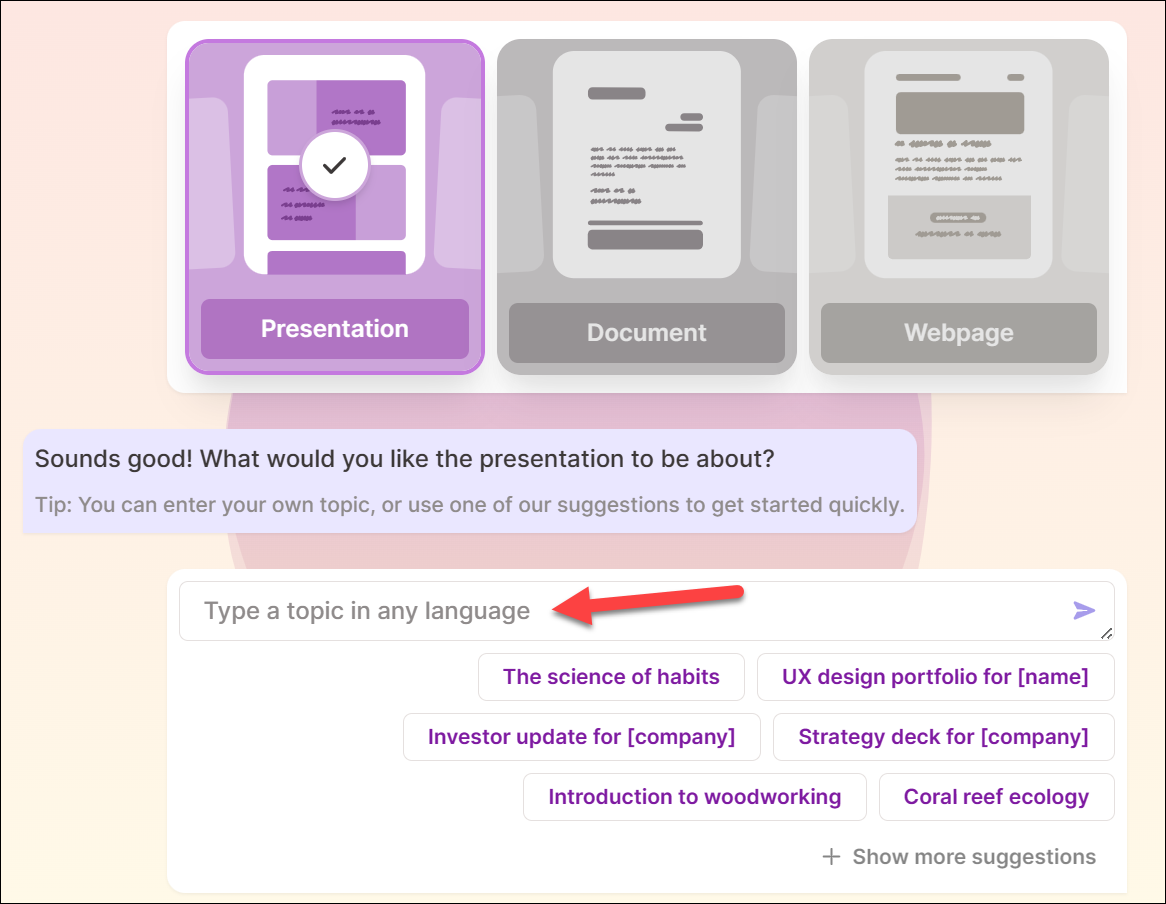 Gamma will generate the presentation for you.