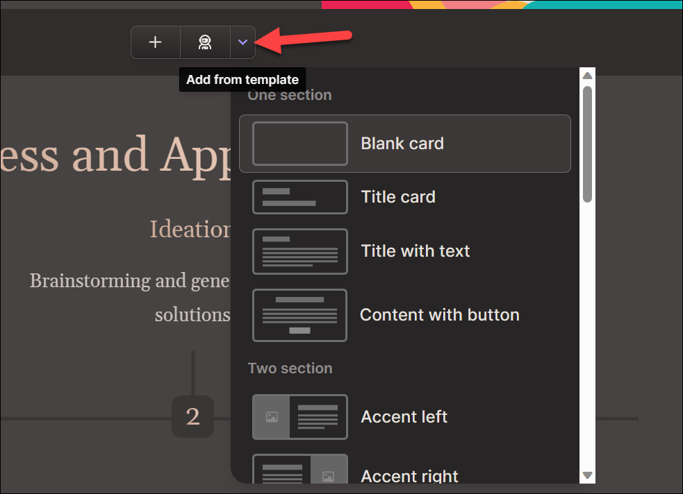 To add a card above any other card, click the 'Add from Template' option above that card.