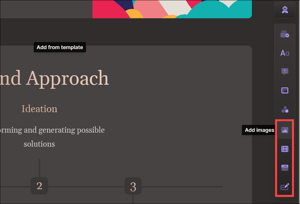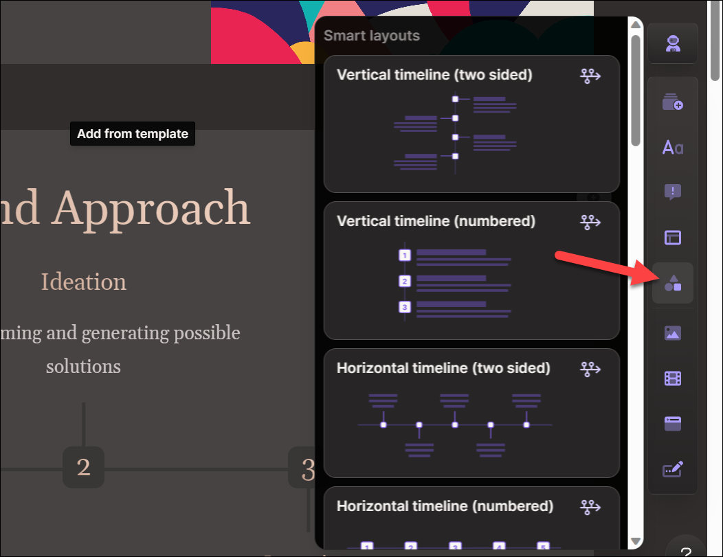 If you want to add visual elements such as timelines, diagrams, etc., go to the 'Visual Templates' option.