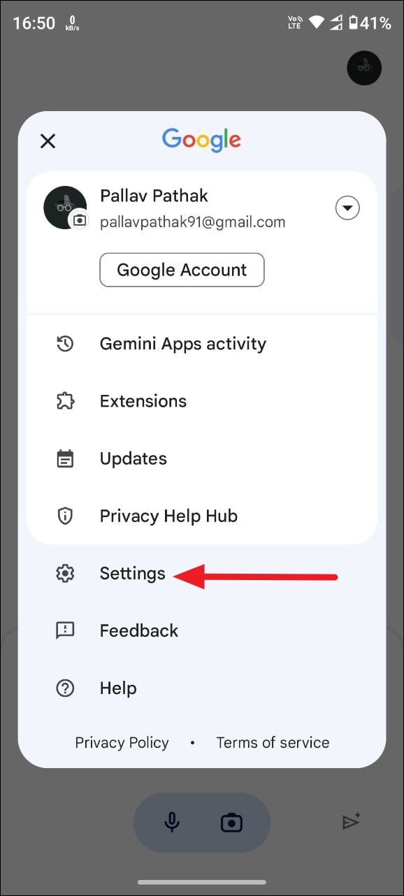 - A new pop-up will appear with various options, like your Gemini Apps Activity, Extensions, and Updates. Tap the 'Settings' button to open the Gemini Settings page.