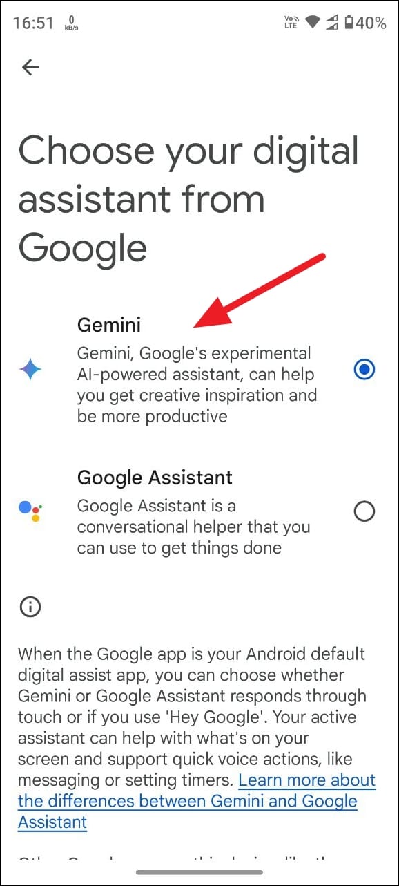 - Finally, tap to select Gemini and make it the default assistant on your device.