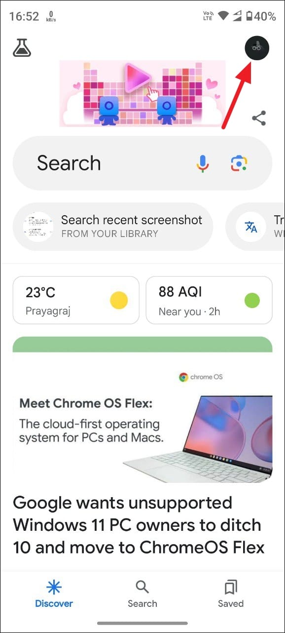 - Open the Google app on your smartphone and tap on your profile picture in the upper right-hand corner.