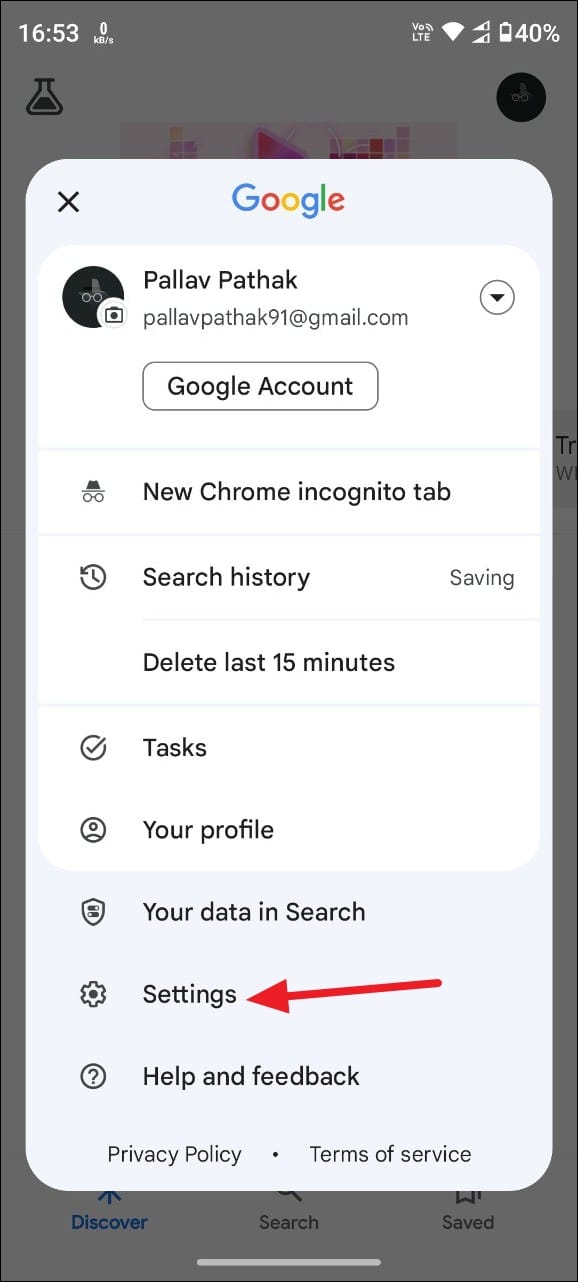 - Then, tap the 'Settings' button to open your Google Account Settings page.