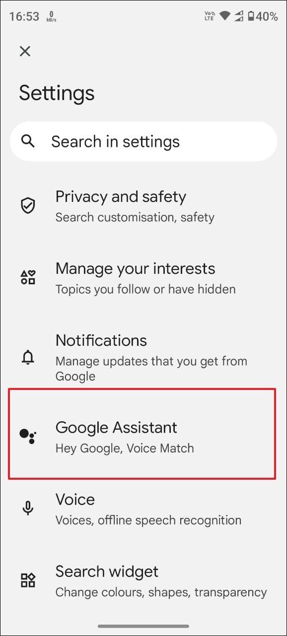 - On the settings page, tap the 'Google Assistant' button to bring all the Assistant-related settings.