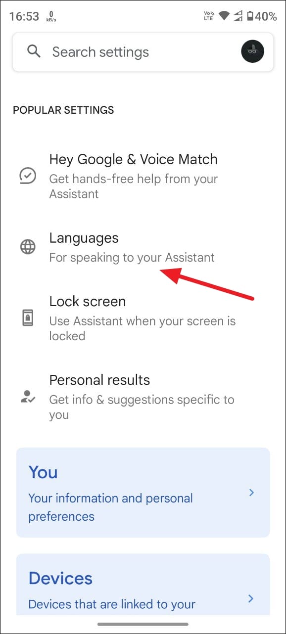 - From here, you will need to select the 'Languages' option, which dictates the languages you can use to interact with Google Assistant.