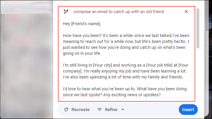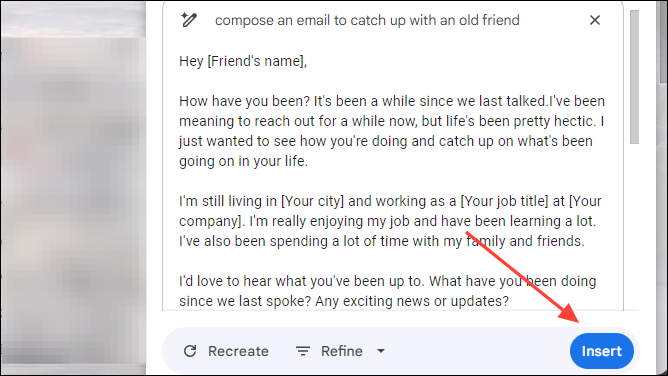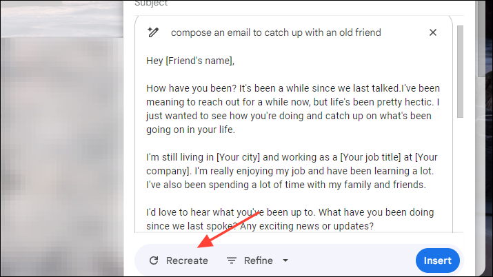 - Gemini will create a draft. If you don't like the response, you can click the 'Recreate' button at the bottom to get another draft.
