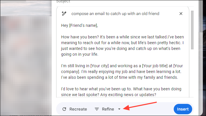 - Open a draft in Gmail and scroll down to the 'Refine' button.