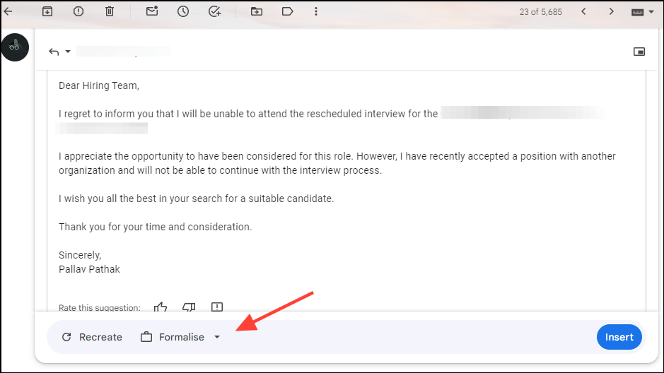 - Selecting the 'Formalise' option will make your draft sound more formal.