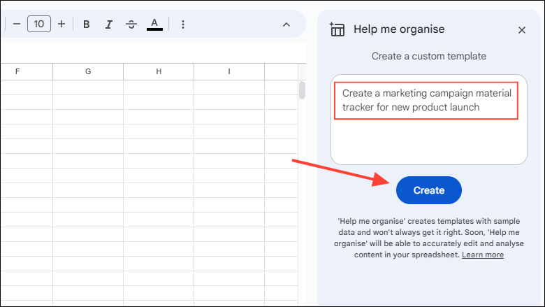 With Gemini, you can create tables using simple prompts, streamlining the data organization process.