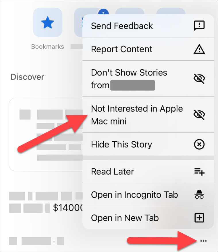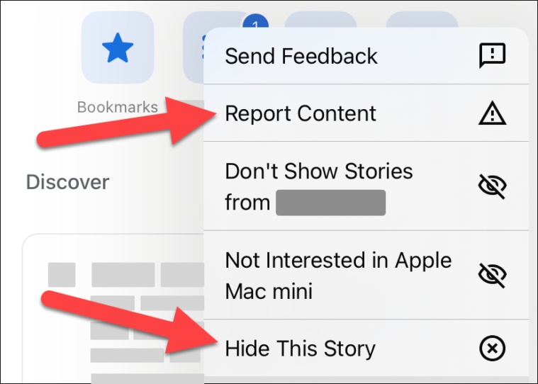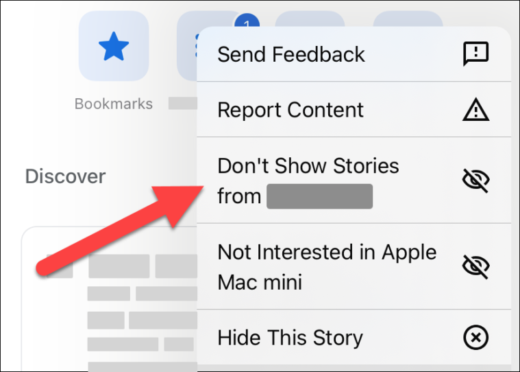 Similarly, you can also block websites that you don’t enjoy reading from showing up in your Discover feed. To do so, select the ‘Don’t Show Stories from [Website Name]’ option from the options menu and you’ll never see articles from the particular website again.