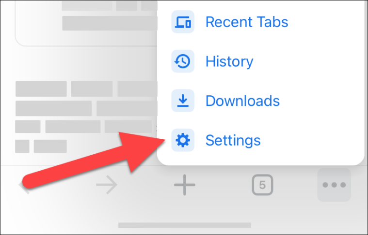To enable Discover in Chrome, tap on the ‘Menu’ icon at the bottom-right corner in the browser and select ‘Settings’ from the available options.