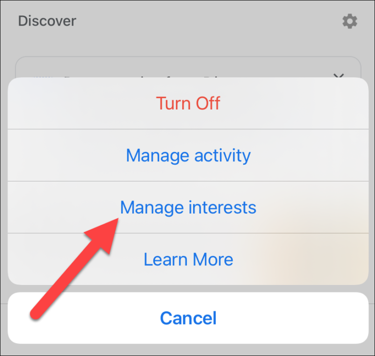 Then, tap on the ‘Manage interests’ option from the menu that appears.