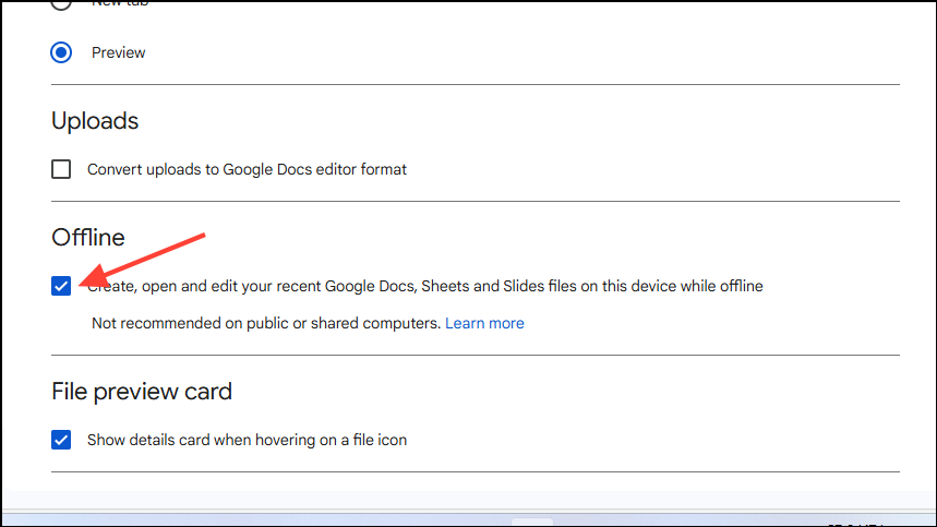 - You can also preview offline files by going to the Google Drive home page and then clicking on the circle with a checkmark icon at the top right.