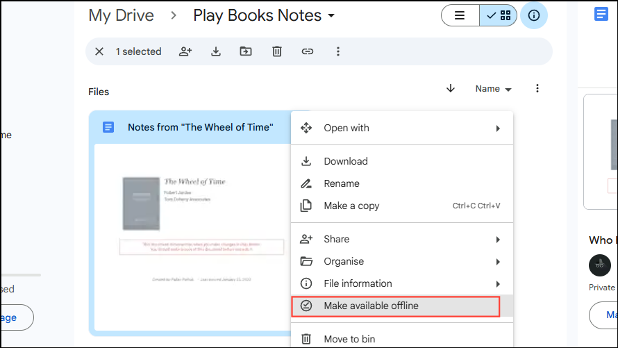 - Right-click on the three dots next to it and then click on 'Make available offline'. Now, you will be able to edit the file even when you don't have an internet connection.