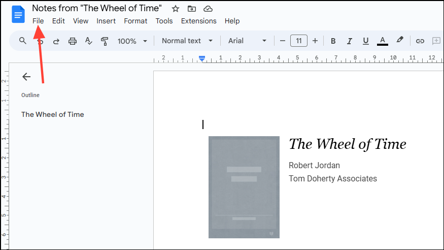 - Open the Google Docs file you want to use offline and click on the File menu at the top left.