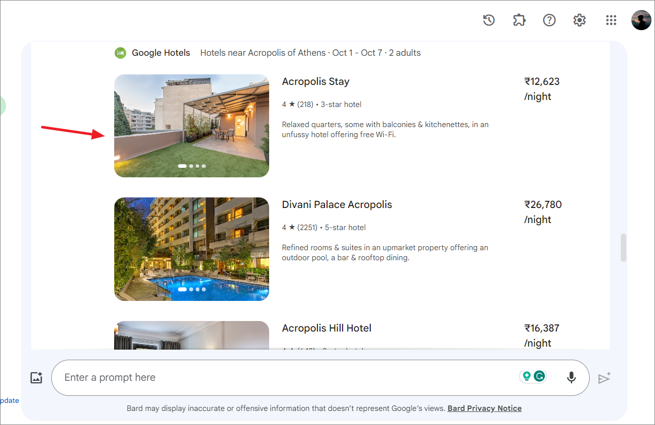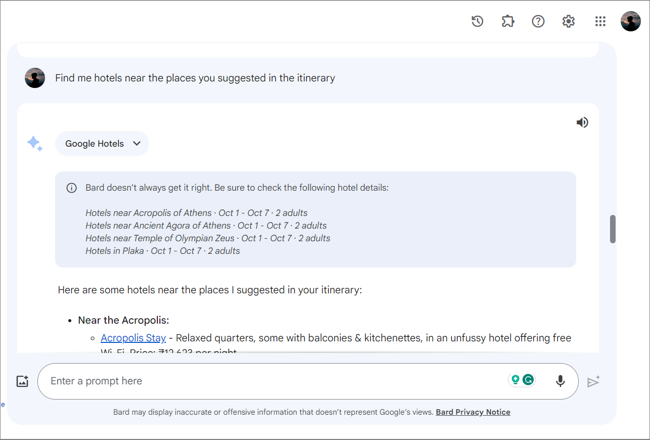 You can also ask Gemini to find Hotel options for your stay: