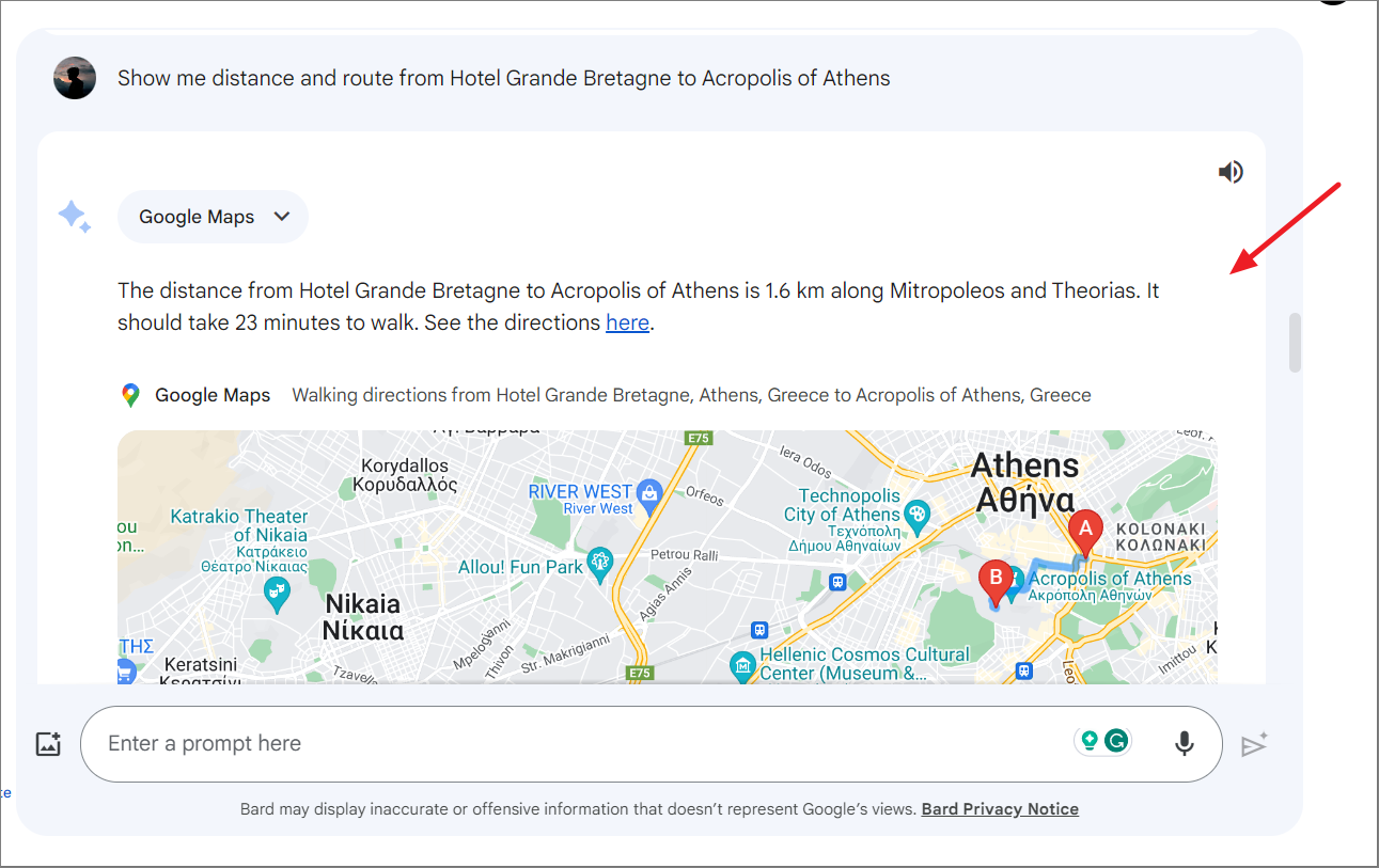 Gemini's Google Maps extension can be used to get directions for the places you want to visit on your trip: