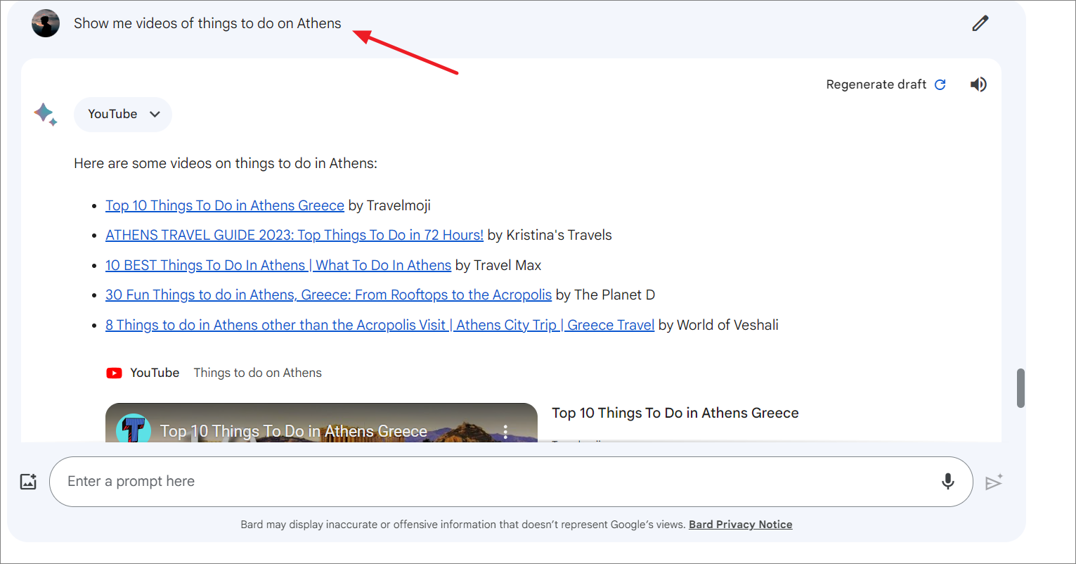 For instance, you're planning a vacation to Athens, Greece, and want to use Gemini Extensions to help you plan the trip. You can do this by giving this prompt: Gemini , help me plan a trip to Athens, Greece and create me an itinerary and packing list.