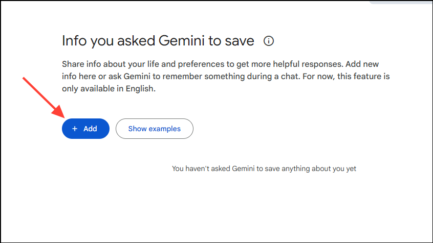 - On the next page, you can provide the information you want Gemini to remember. To do so, click on the 'Add' button.