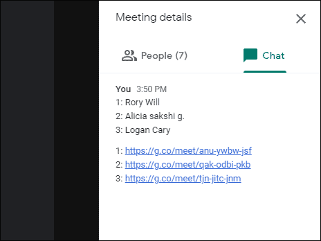 Then instruct the meeting attendees to see which group they have been assigned to and join their room accordingly by clicking the Google Meet link.