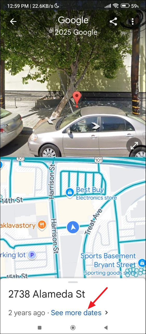 - When Street View opens, tap on 'See more dates' at the bottom.