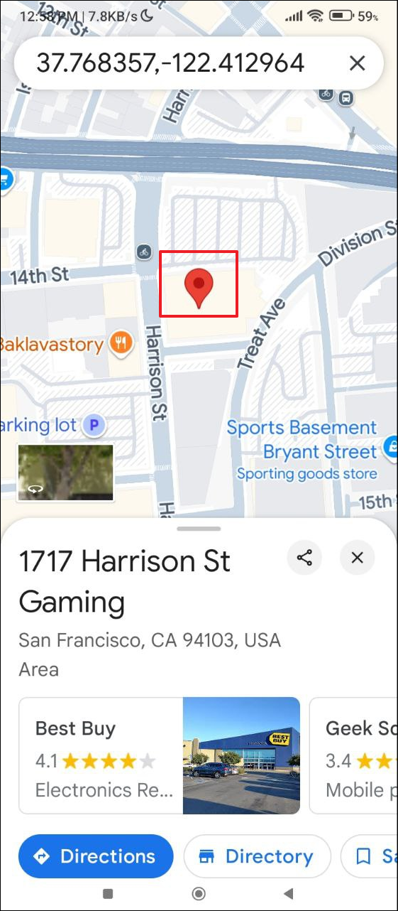 - Once the map shows the location you want to view, tap and hold anywhere on the map to add a pin and open it in Street View.