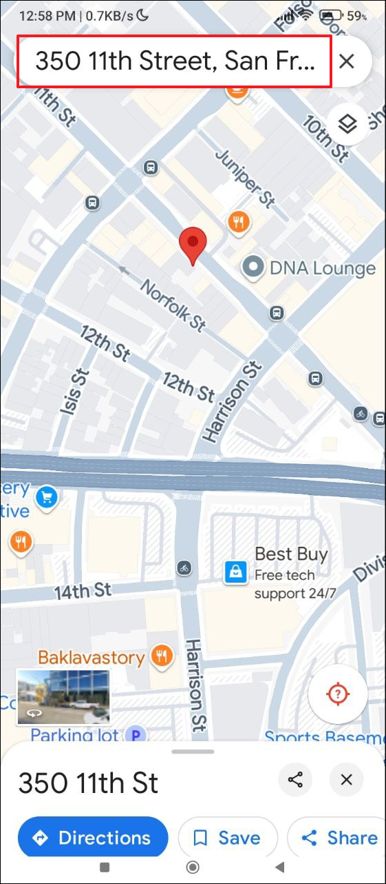 - Open the Google Maps app on your phone and search for a location you want to view.