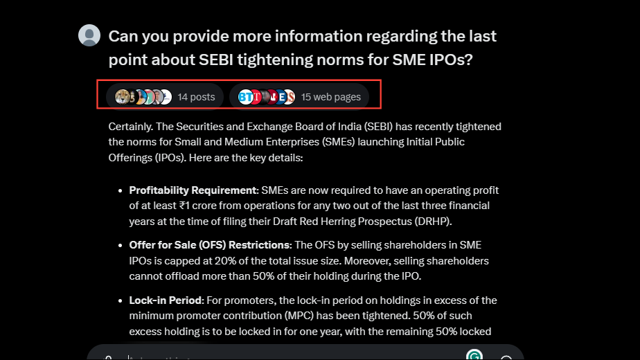 - The AI will show you the answer in bullet points along with links to relevant pages and posts.