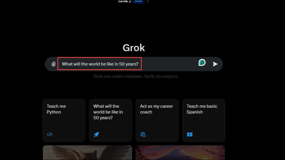- To give Grok AI a new prompt, type it in the box at the bottom and press Enter.
