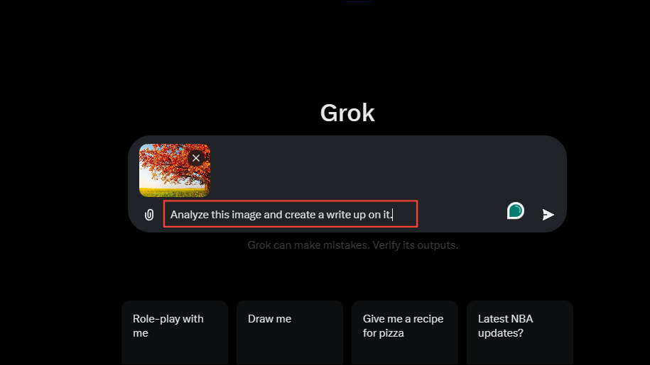 - After uploading your image, type in your prompt asking Grok AI to analyze the image and press Enter.