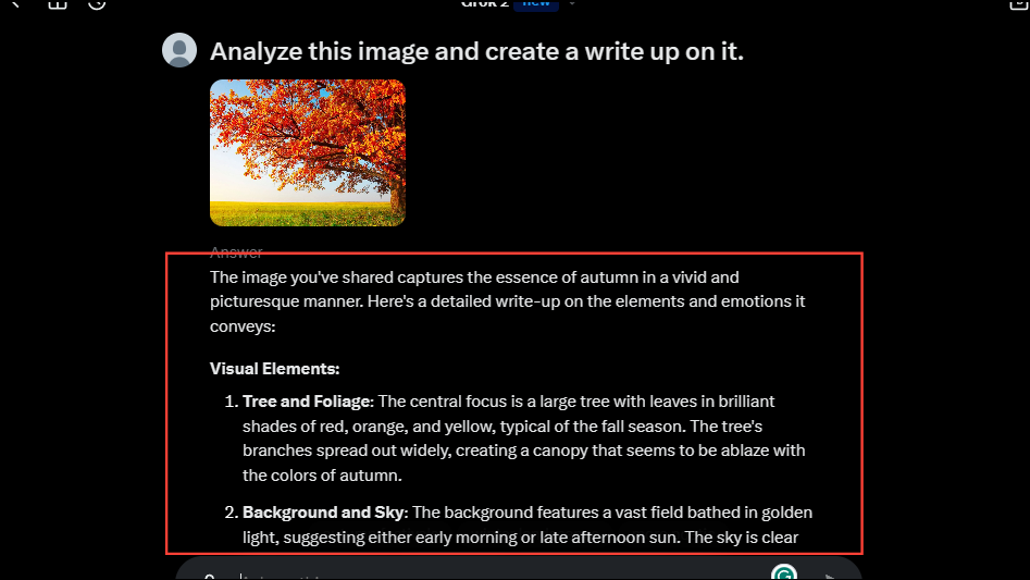 - Grok AI will then analyze your uploaded image and provide you with a suitable response, depending on your prompt.