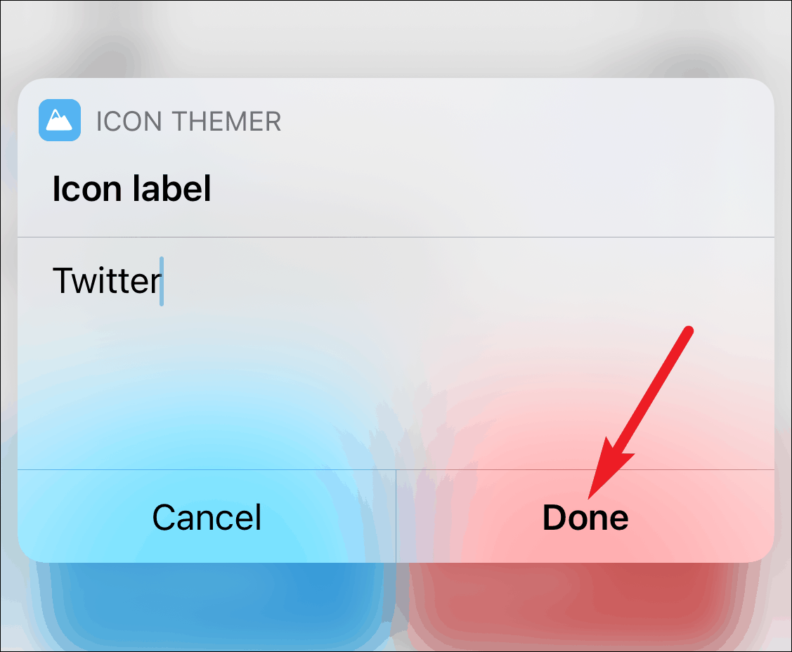 Now, enter the name you want to display as the label under the icon. If you don’t want anything displayed as the label, enter a single space but don’t leave it completely blank to avoid the possibility of errors. Tap on ‘Done’ to proceed to the next step.