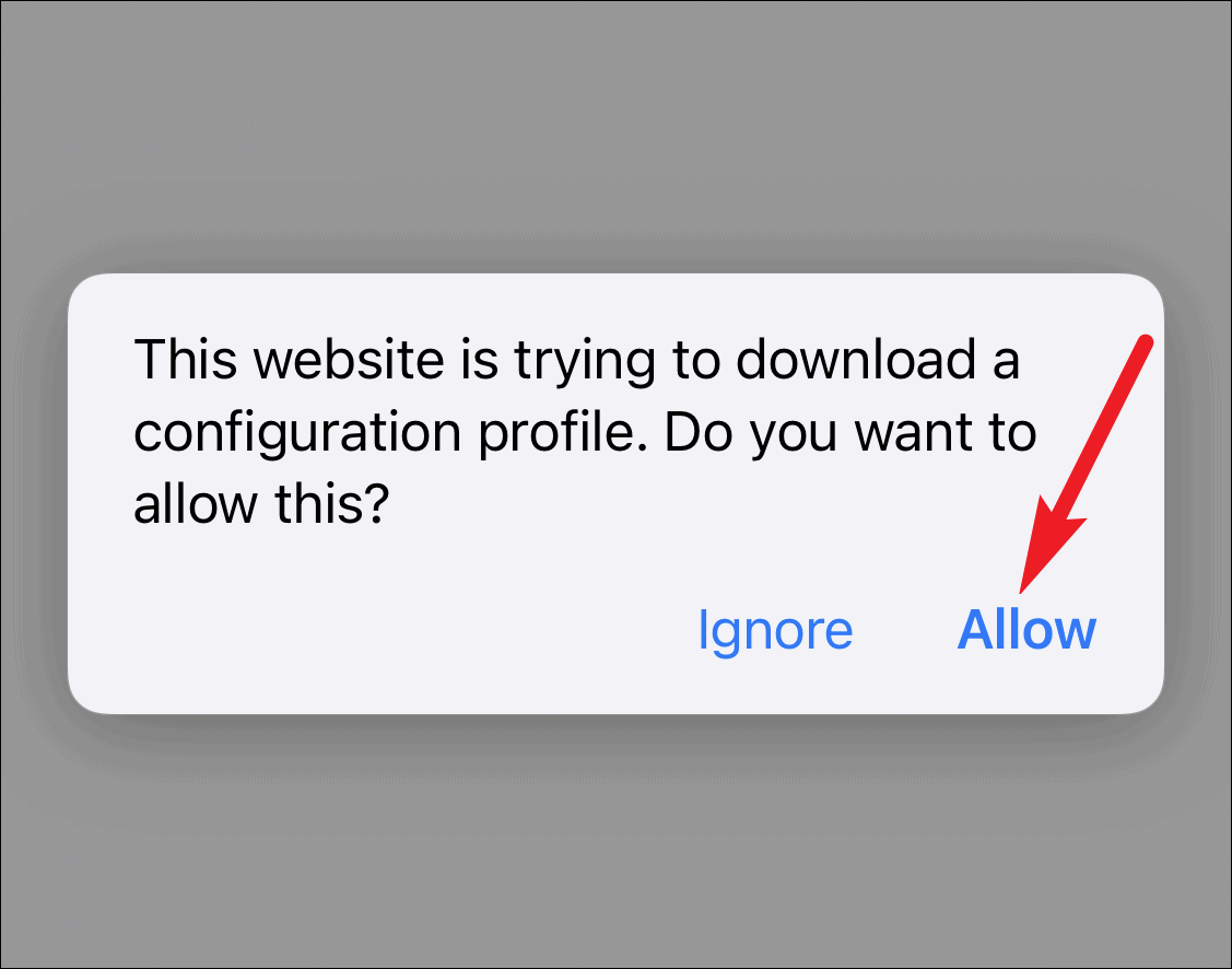 It’ll redirect you to Safari, and a pop-up message will appear stating that the website is trying to download a configuration profile. Tap on ‘Allow’.