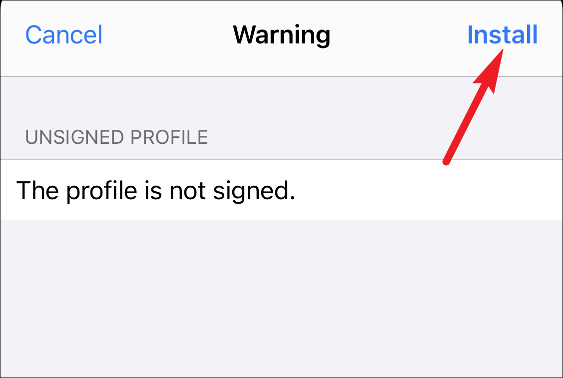 It might display a warning that the profile is not signed. Tap on ‘Install’ again to proceed.