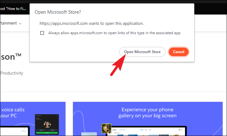 Step 2: In the alert window, click on the 'Open Microsoft Store app' button. This will launch the Microsoft Store on your PC.