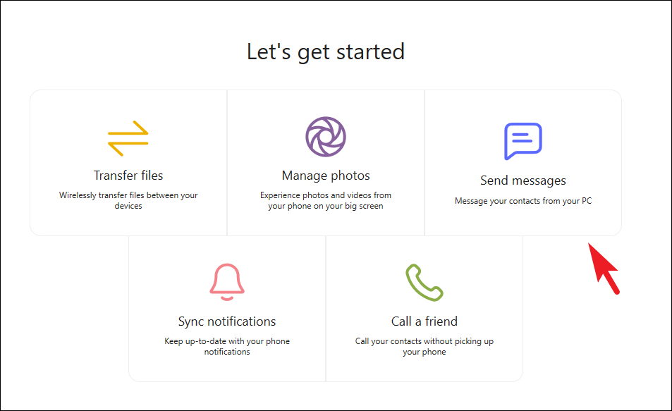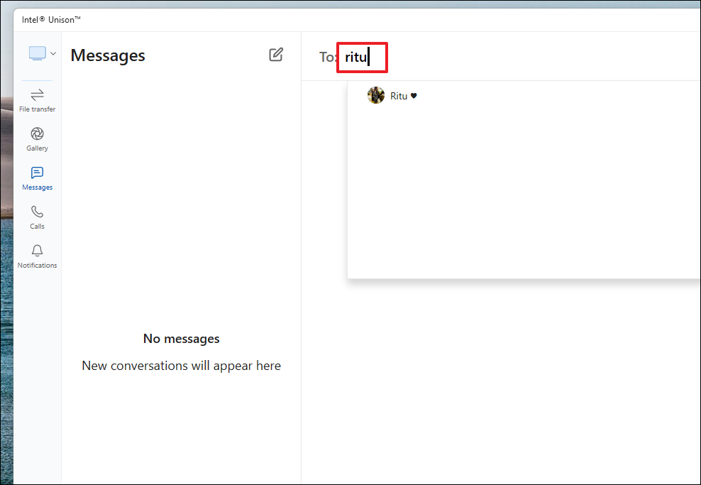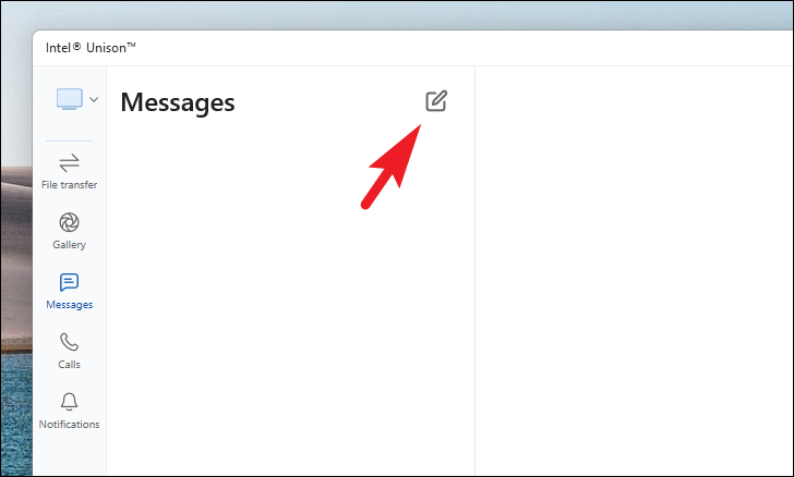 Step 1: On your Windows PC, open the Intel Unison app. From the main screen, click on the 'Messages' icon or the 'Send messages' tile.