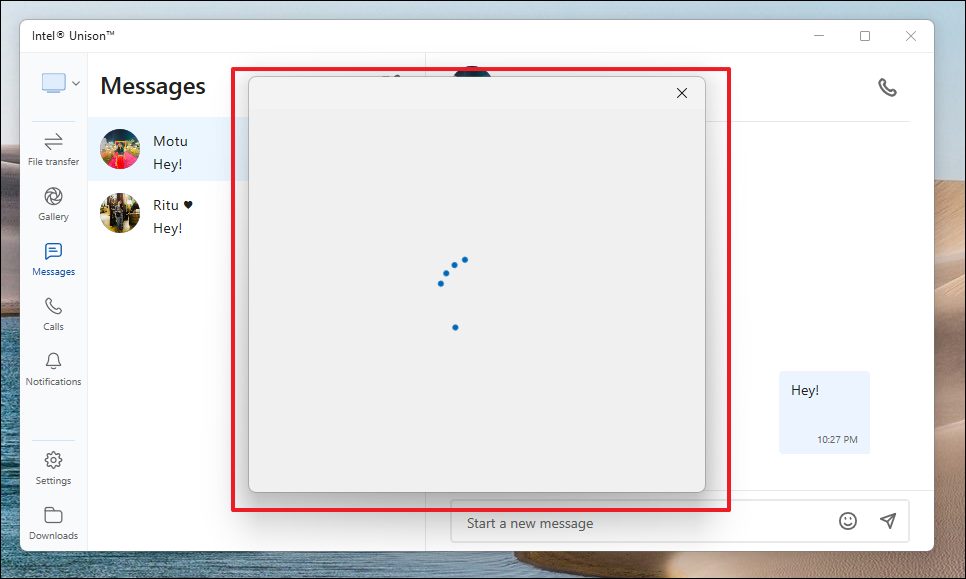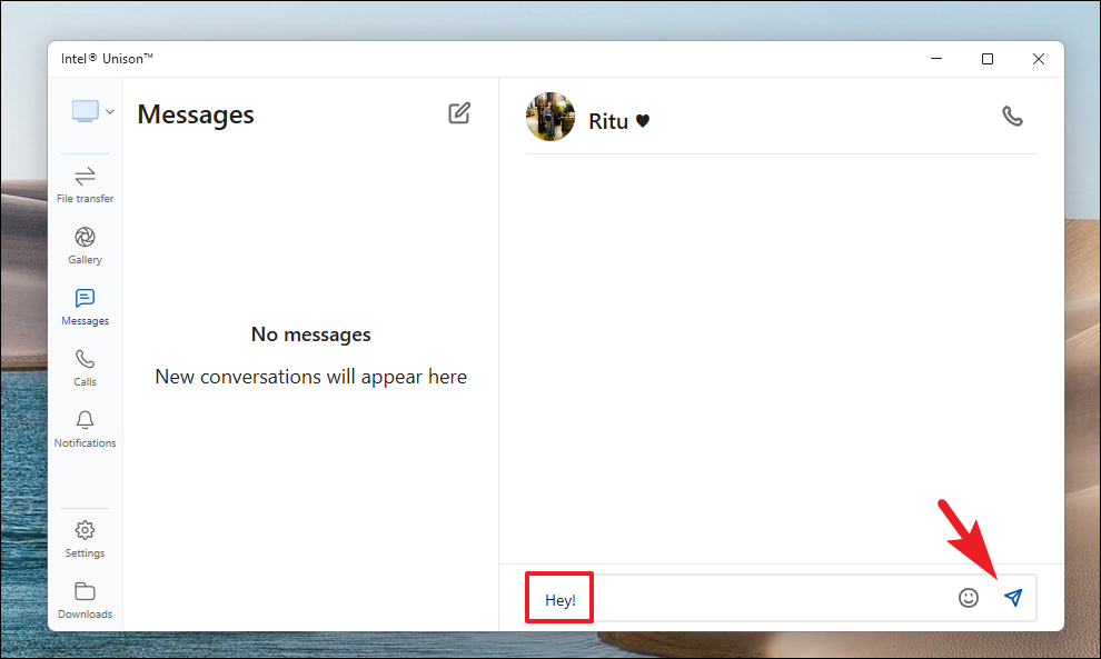 Congratulations! You've successfully sent an iMessage from your Windows 11 PC using Intel Unison.