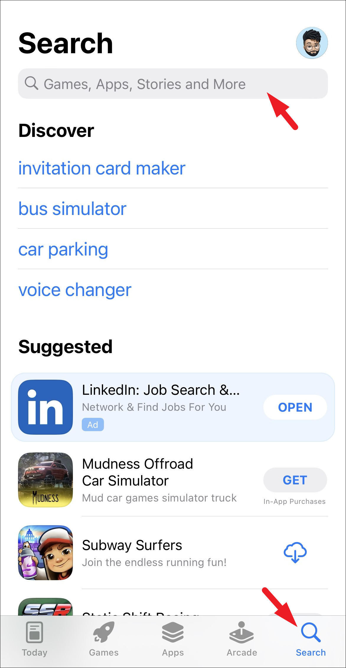 Step 2: Tap on the 'Search' tab at the bottom right corner, then tap on the search bar at the top.