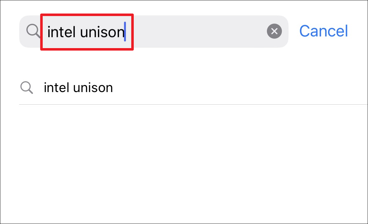 Step 3: Type 'Intel Unison' in the search bar and tap the 'Search' button on your keyboard.