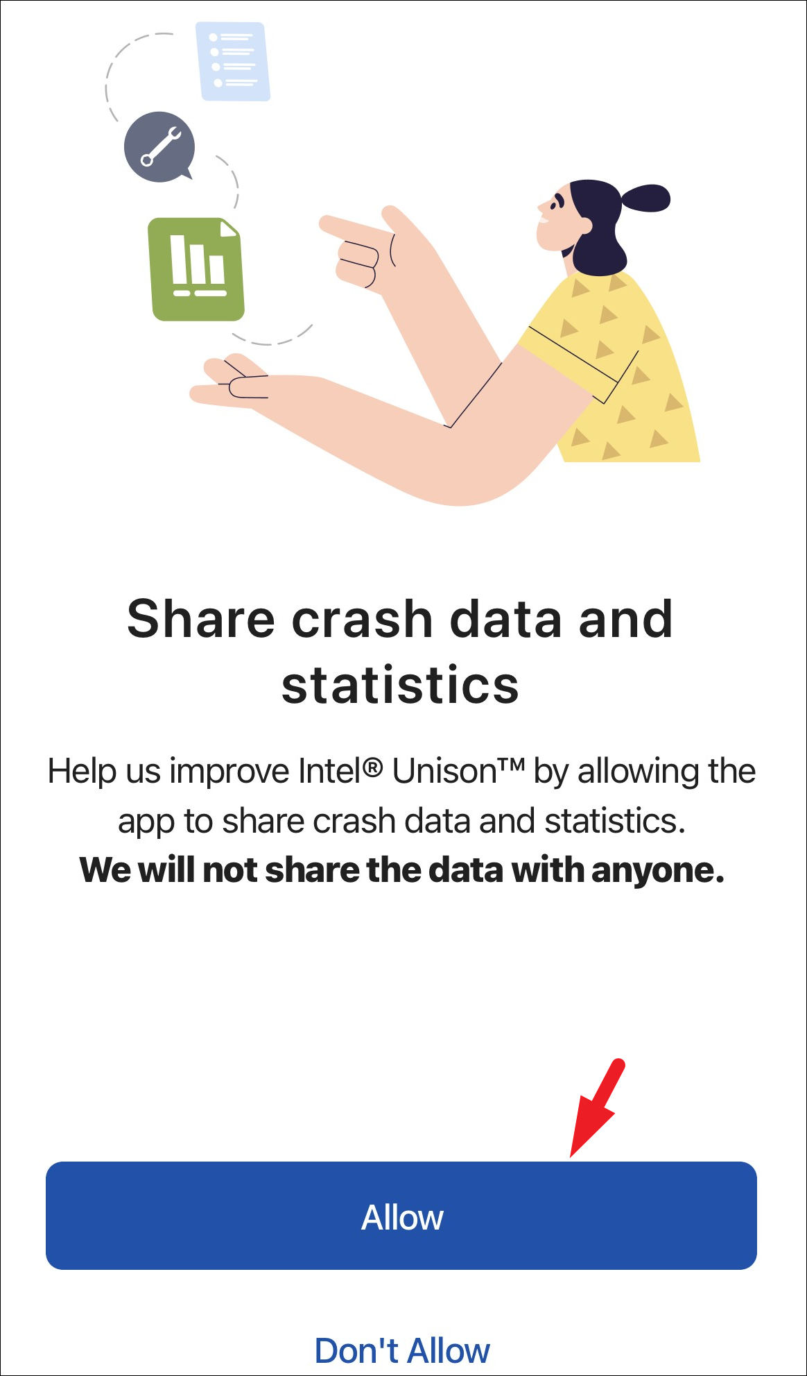 Step 5: You will be prompted to share anonymous usage statistics. Click 'Allow' to share or 'Don't Allow' if you prefer not to. This choice won't affect your use of the app.
