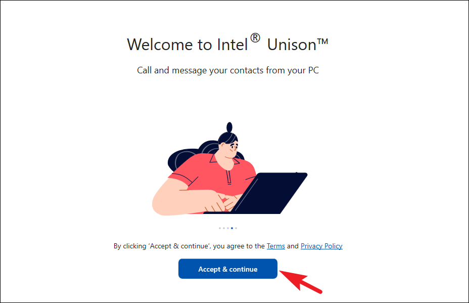 Step 4: Once the installation is complete, open the Intel Unison app. Click on the 'Accept & Continue' button to proceed.