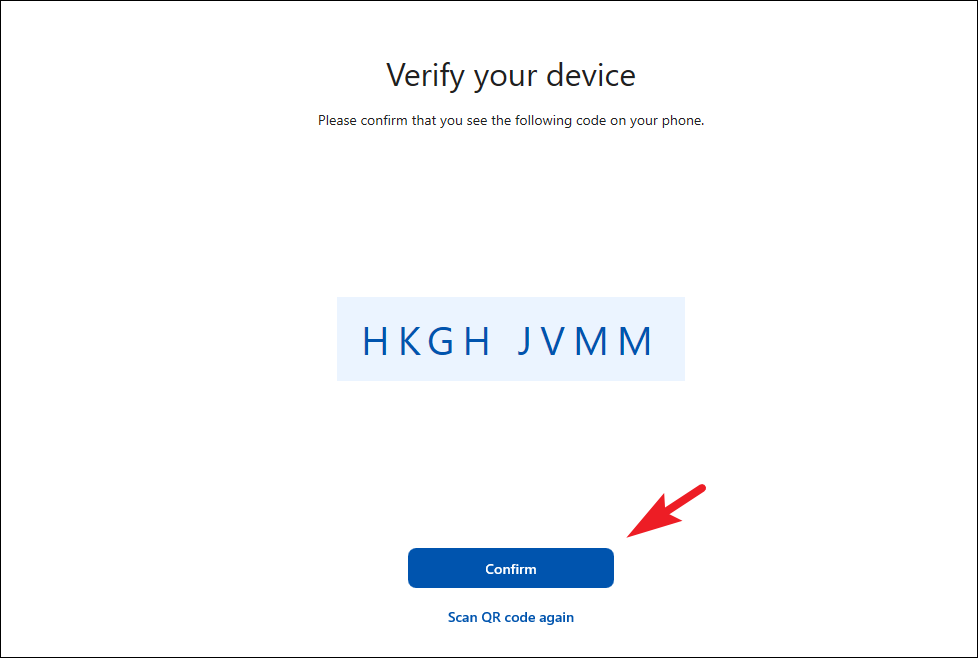 Step 3: After scanning the QR code or entering the text code, a confirmation prompt will appear on your PC. Click 'Confirm' to verify the pairing.