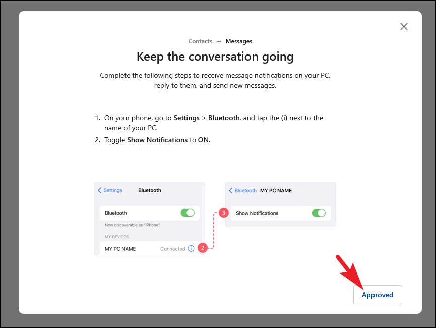 Step 2: If prompted to enable Bluetooth notifications, click 'Approved' (since you've already enabled notifications on your iPhone).