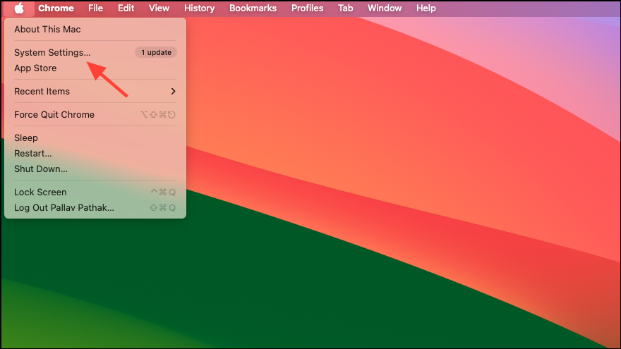 Step 1: Click the Apple menu at the top-left corner of your screen and select System Settings.