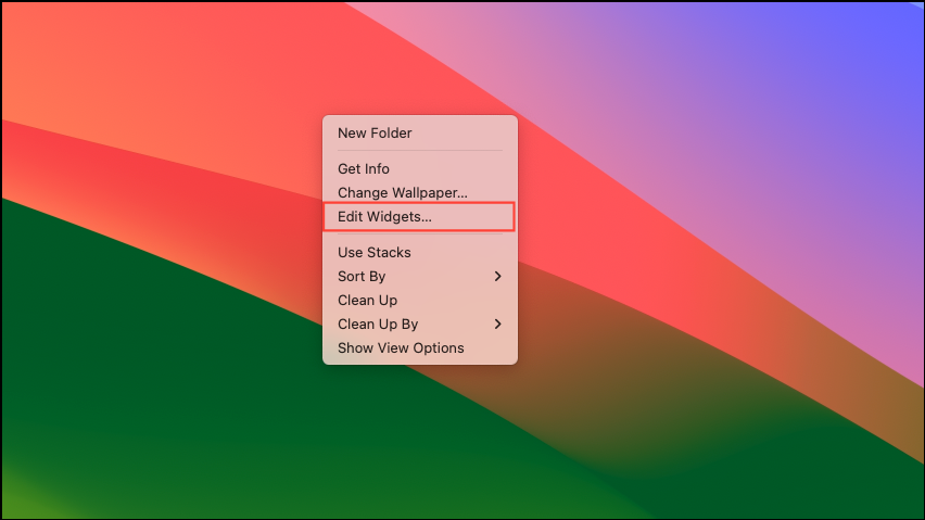 Step 1: To add widgets, right-click (or two-finger click on a trackpad) on any empty space on your desktop and select Edit Widgets from the context menu. This opens the widget gallery, displaying available widgets categorized by apps.
