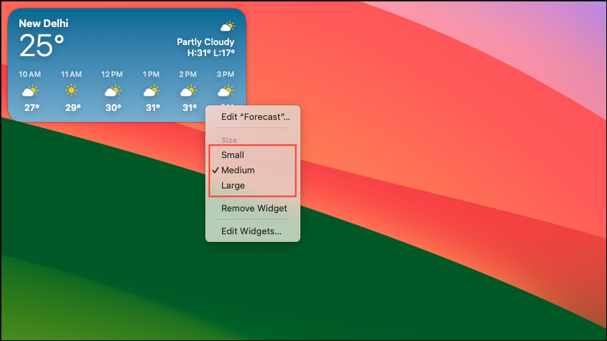 Step 4: You can also change the size of a widget after adding it to the desktop by right-clicking on it and selecting a different size.