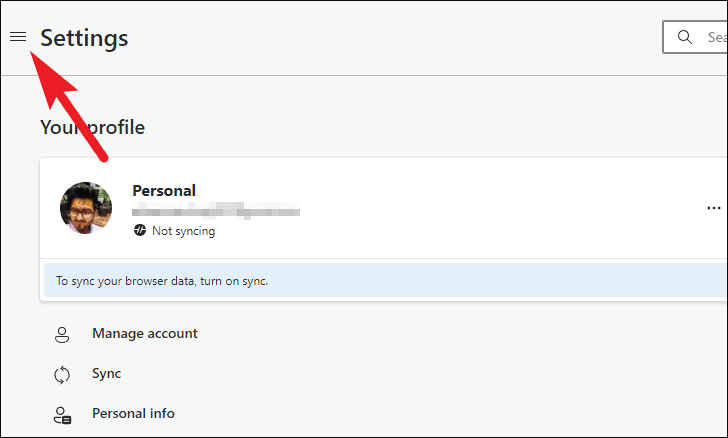- In the Settings tab, click the three horizontal lines (hamburger icon) at the top-left corner.