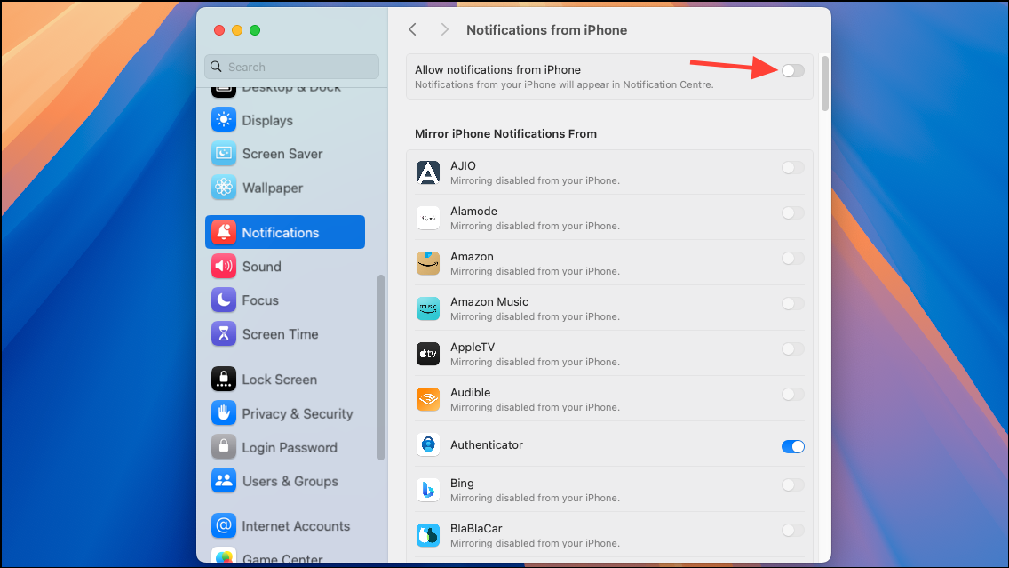- To disable the notifications completely, turn off the toggle for 'Allow Notifications from iPhone'. Otherwise, keep it on.