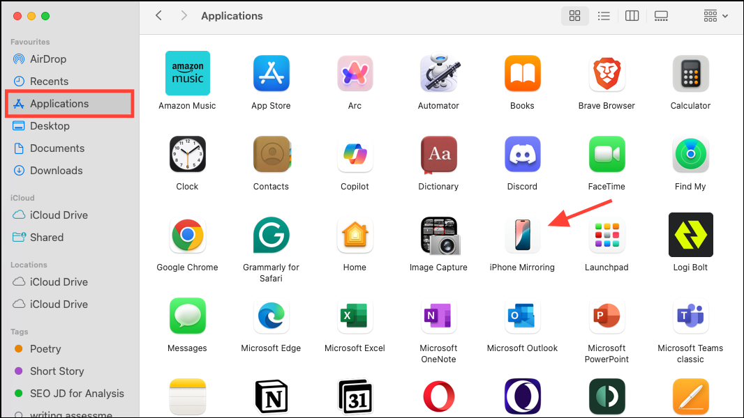 - Open the application for 'iPhone Mirroring'. You can also find the app using Spotlight search.